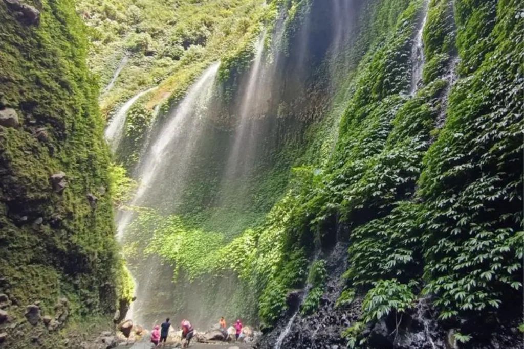 Madakaripura est une cascade située dans la région de Probolinggo, à Java Est. Elle est réputée pour son ambiance mystique et sa beauté spectaculaire, cachée dans une vallée étroite. L’eau chute de manière majestueuse depuis une hauteur impressionnante, créant une brume fraîche qui entoure la vallée. Pour y accéder, les visiteurs traversent des rivières et des sentiers sinueux, ajoutant à l’aventure. Madakaripura est un lieu parfait pour ceux qui recherchent un cadre paisible et naturel. Réservez dès maintenant et laissez Java vous séduire!